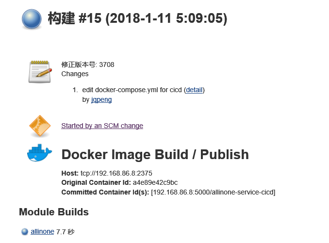 SVN提交一个变更,等几分钟,查看Subversion Polling Log,已经有记录了,发现已经自动构建了一个版本
