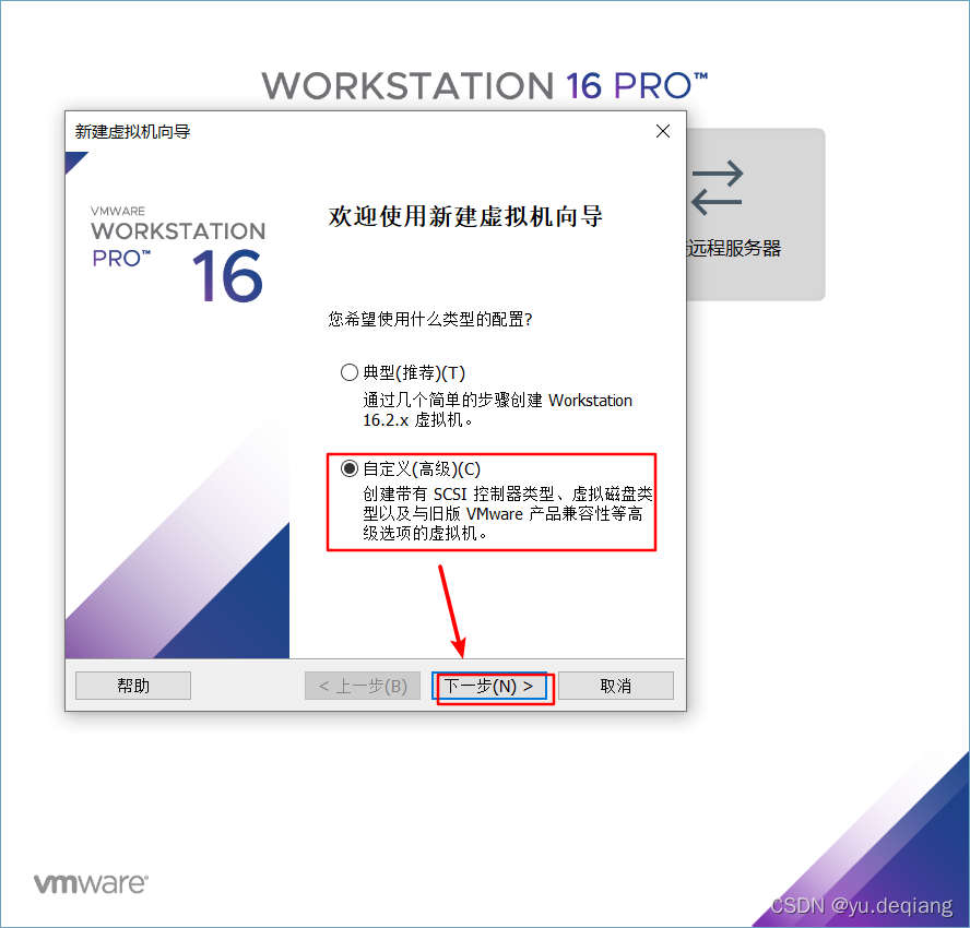 3、选择自定义,再点击下一步