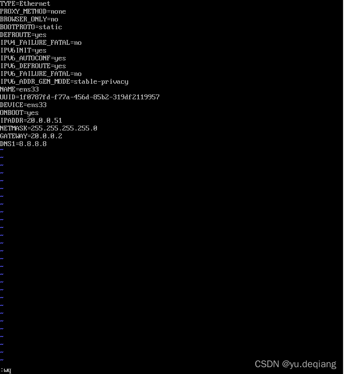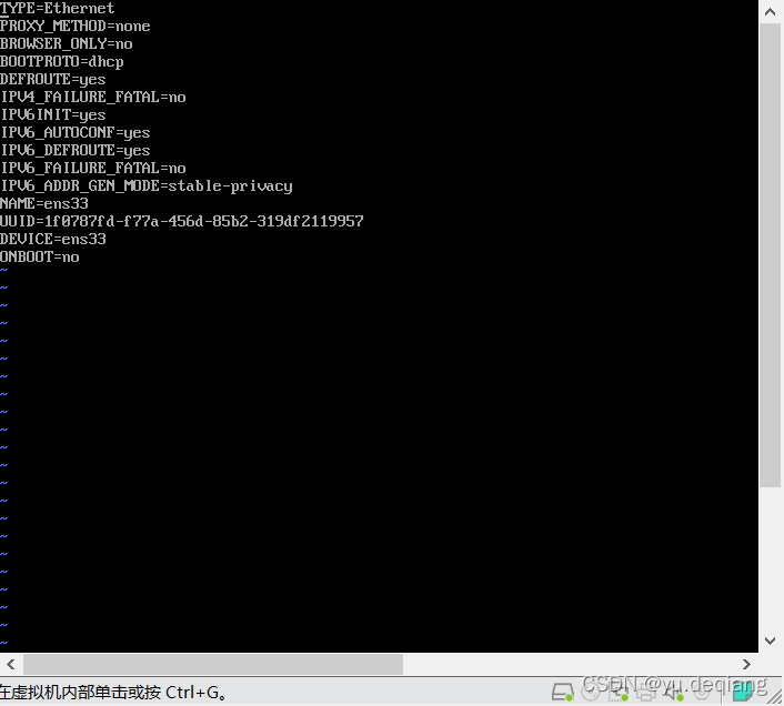 命令: vi /etc/sysconfig/network-scripts/ifcfg-ens33
