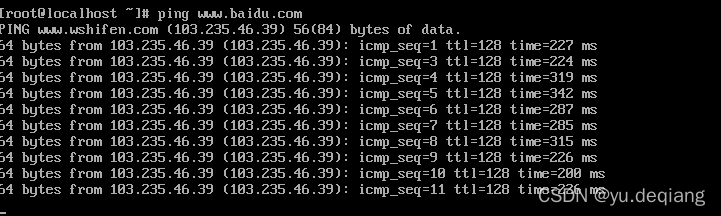 6、再次ping通www.baidu.com,可正常通信。完成网络的配置。
