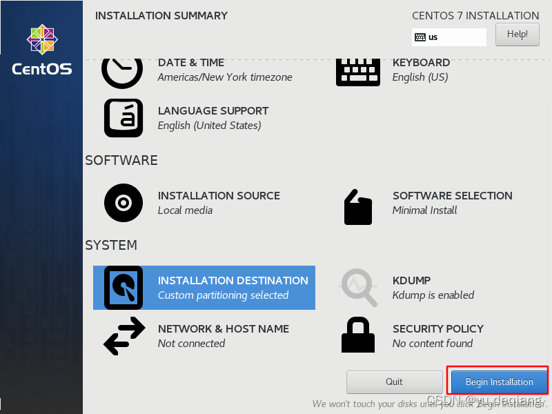 29、分区结束后,回到初始界面点击Begin Installation(开始安装),进行安装系统