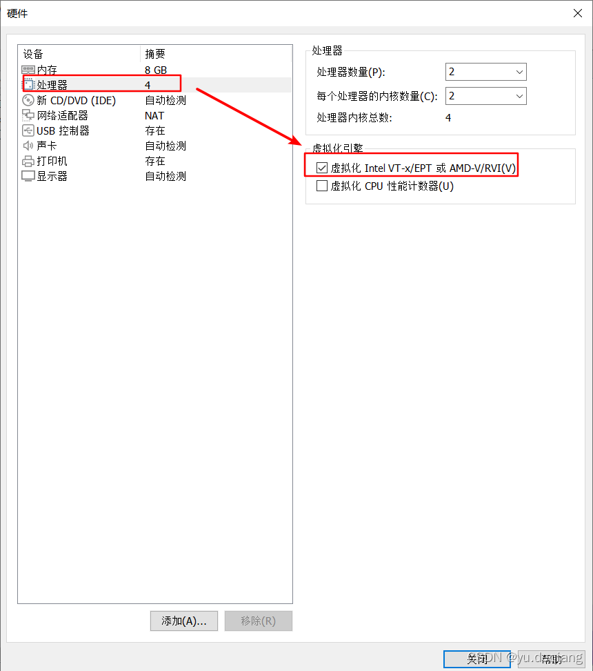 17、选择处理器,将虚拟化前面打上勾