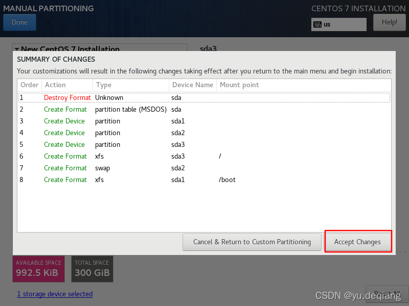 28、再次确认分区信息,点击Accept Changes(接受改变)。