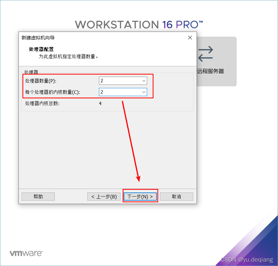 8、处理器跟内核这边都改为2,然后点击下一步