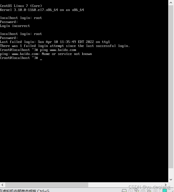 1、先进入系统,然后ping www.baidu.com 发现没有连通,那就需要设置网络