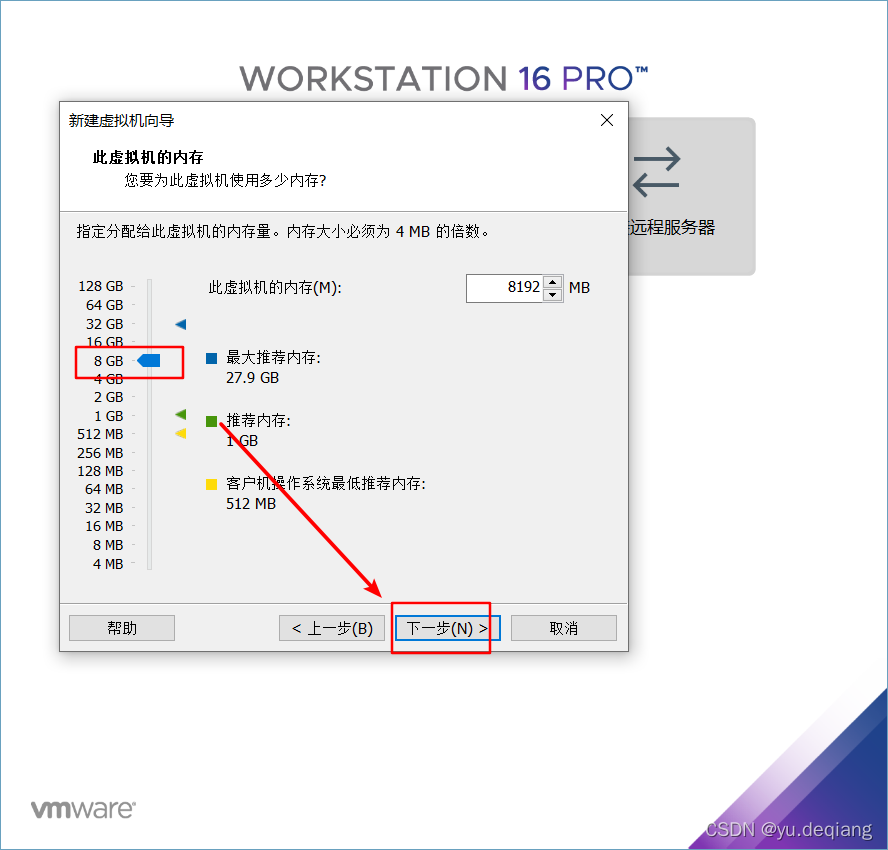9、虚拟机内存这边给到8G