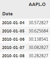 Second,the reading of the raw data and the selection of the financial time series for a single symbol, the stock of Apple, Inc. (AAPL.O). The analysis in this section is based onend-of-day data; intraday data is used in subsequent sections: