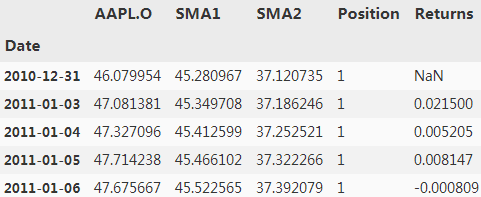 data['Position']= np.where(data['SMA1'] > data['SMA2'], 1, -1)