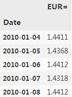 #data['Returns'] = np.log(data[symbol] / data[symbol].shift(1))