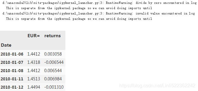 data['Returns'] = np.log(data[symbol]/data[symbol].shift(1)) #ln == log_e