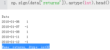 data['direction'] #data['direction'] = np.sign(data['returns']).astype(int)