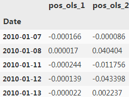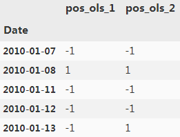 Then the positionings, represented as +1 or -1, are multiplied by the relevant log return. This simple calculation is possible since a long position 多头头寸earns the return of the Apple stock and a short position 空头头寸earns the negative return of the Apple stock.