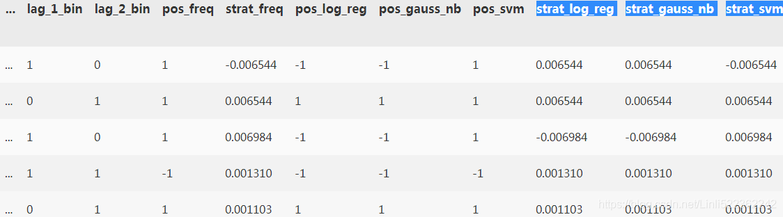 #data[['returns', 'strat_freq','strat_log_reg','trat_gauss_nb','strat_svm']]