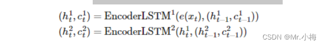 构建一个双层的LSTM,输入句子X,编码后进入RNN第一层,使用隐藏状态,输出结果作为下一层的输入,用上标表示第几次,第一层隐藏状态由以下公式得出: