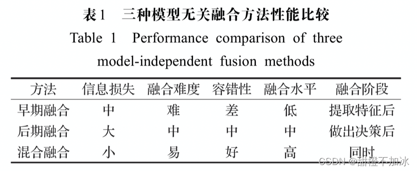 融合发生的时间是一个重要的考虑因素。针对不同的融合时期或融合水平,模型无关的融合方法共有三种。