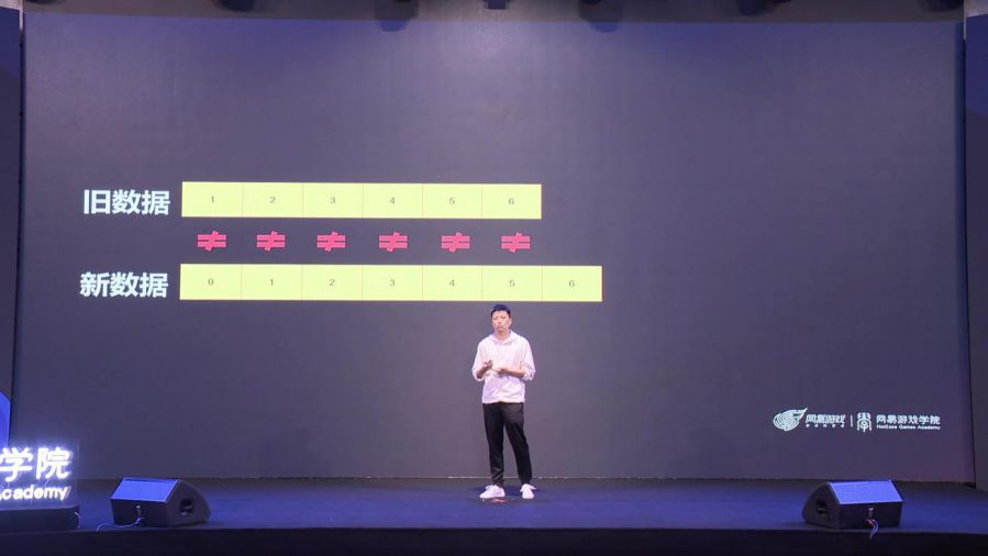 这是新旧两个列表,列表是我们在编辑数据中非常常见的数据结构。比如说你有模型的列表、特效的列表等等,按照刚才的方式我们会对两个列表的数据进行比较,然后发现列表中的每一项都发生了改变,于是我们需要对整个列表的UI都进行相应的更新。