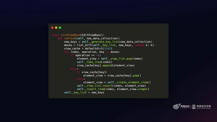 首先你需要使用一个不可变的列表来保存你的数据,然后你只需要继承我们的 ListViewBase ,在这个类里面你只需要做一件事情,就是告诉这个列表容器里的每一个元素需要怎样渲染、需要怎么样的UI元素,然后你就只需要一个refresh函数的调用就可以刷新整个列表。