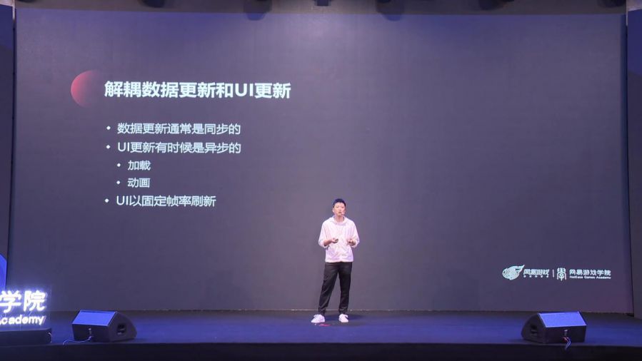 解耦带来什么样的好处呢?数据的更新往往都是同步的,它发生得非常快速,但是UI的更新有些时候是异步的。比如说我们刚刚提到的模型的加载,它往往是一个异步的过程,又或者说在UI界面上有动画,动画本身也是一个异步的过程 ,一个同步的事件去和一个异步的行为发生耦合的时候,往往就会带来很多复杂的事情。