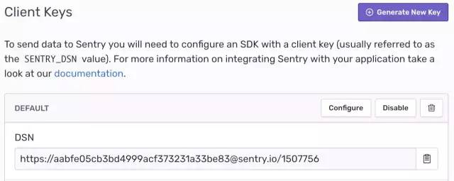 首先,新建项目在sentry服务端平台完成。sentry.io/。新建完项目后,就会生成一个DSN串。DSN是链接我们要上报的项目和sentry服务端的钥匙。每当我们在sentry服务端创建一个新的项目,都会得到一个独一无二的DSN。在项目初始化时需要配置DSN到项目.这样客户端报错,服务端就能抓到对应项目的错误了。