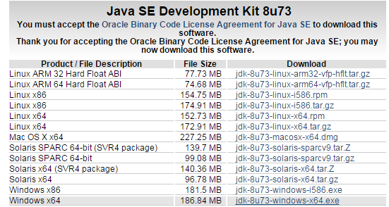 JDK下载地址: http://www.oracle.com/technetwork/java/javase/downloads/jdk8-downloads-2133151.html