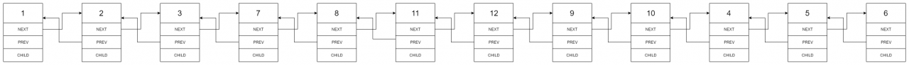 输入:head = [1,2,3,4,5,6,null,null,null,7,8,9,10,null,null,11,12]