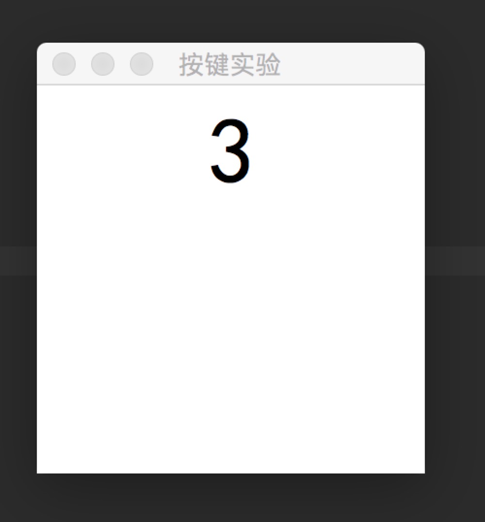 from tkinter import * def show(event): s=event.keysym lb.config(text=s) root=Tk() root.title('按键实验') root.geometry('200x200') lb=Label(root,text='请按键',font=('黑体',48)) lb.bind('<Key>',show) lb.focus_set() lb.pack() root.mainloop()