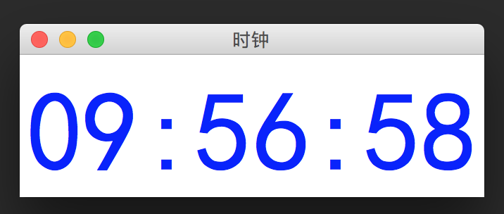 import tkinter import time def gettime(): var.set(time.strftime("%H:%M:%S")) # 获取当前时间 root.after(1000,gettime) # 每隔1s调用函数 gettime 自身获取时间 root = tkinter.Tk() root.title('时钟') var=tkinter.StringVar() lb = tkinter.Label(root,textvariable=var,fg='blue',font=("黑体",80)) lb.pack() gettime() root.mainloop()
