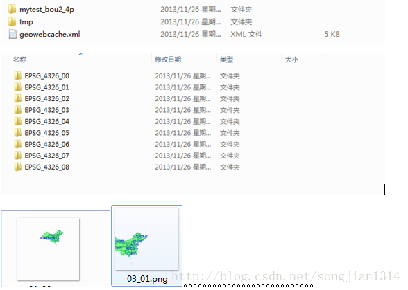 所以等待一段时间后,会发现D:\geowebcache出现的图层的瓦片缓存,一个一个256X256的图片