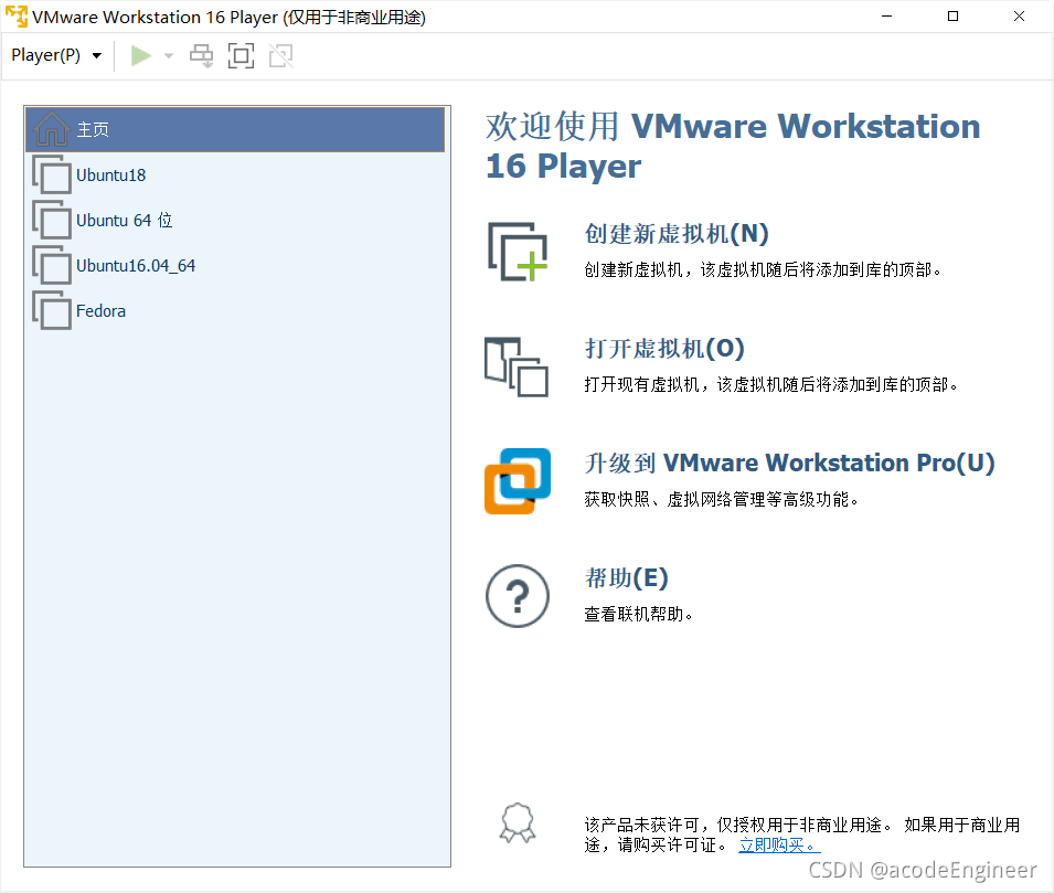 1、VMware Workstation 16 Player下载安装,路径选择外其余默认即可。
