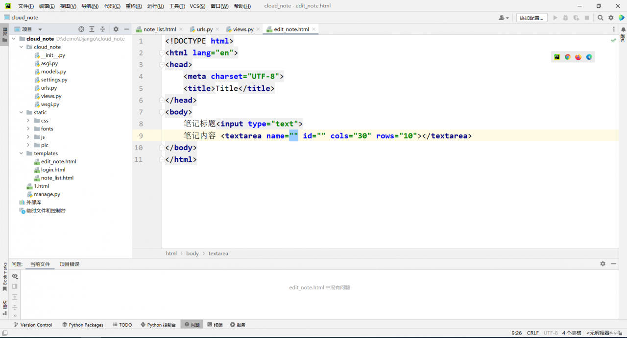 这样在pycharm右侧就出现了test.py的内容,我们可以在其中进行查看与修改