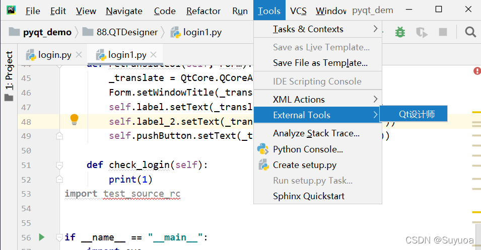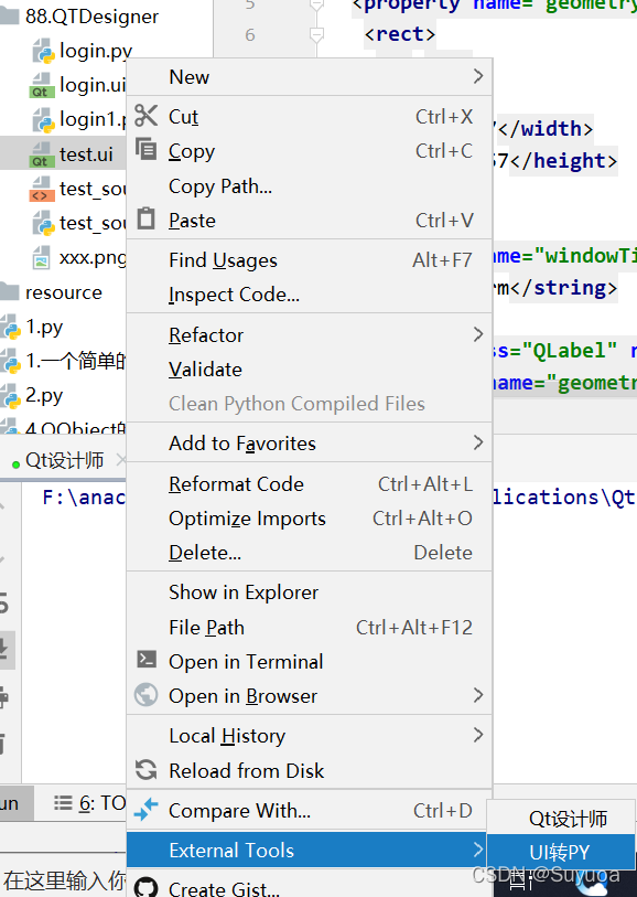 我们一般是在pycharm中右键选择UI文件后直接转换,所以我们这样写