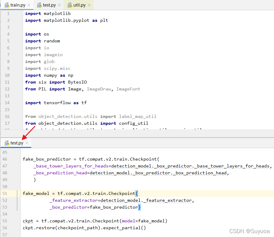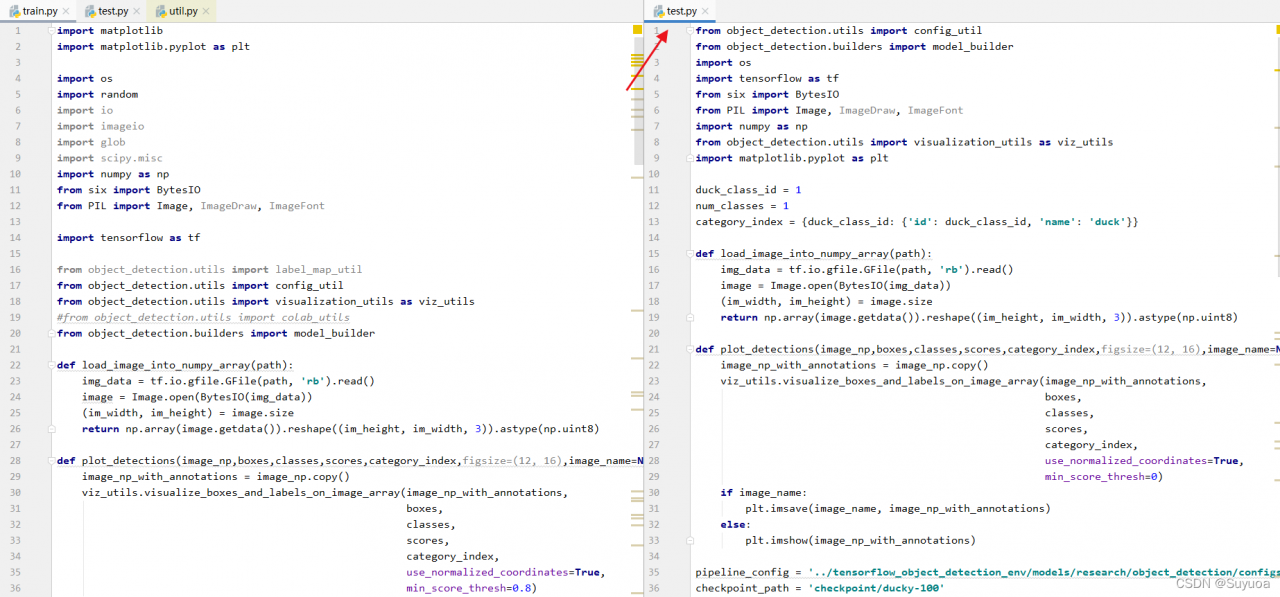 我们有时会有两个代码需要比对的情况,比如说我现在要看这里的train.py与test.py,每次切换就很麻烦