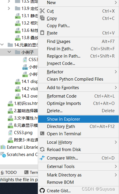 我们右键点击想打开的文件或文件夹,然后点击Show in Explorer
