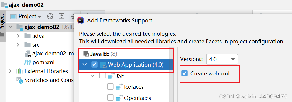 1.2 手动生成(针对于已经创建的项目,改造成 web 项目)(这种方式会缺失pom.xml文件),先新建一个空项目