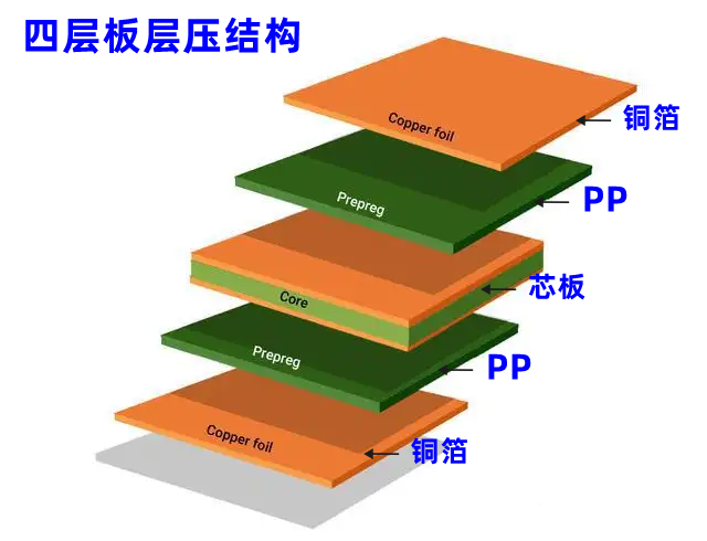华秋四层板层压结构图(7628型):PP厚度0.2mm。