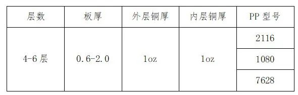 下面我们以四层板、1.6板厚为例,看看这三种层压结构的的PP厚度区别。