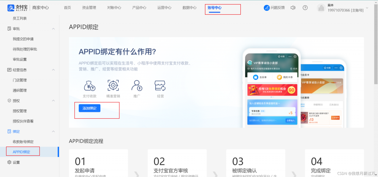 https://mrchportalweb.alipay.com/accountmanage/bind/appIdBindList