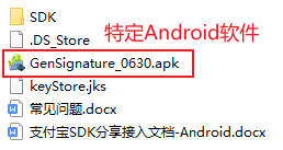 (2)应用签名的获取:在下载工具包中会有GenSignature.apk(应用签名获取工具),具体如下图所示。