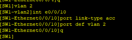 [ ]port default vlan 2 //把接口划分到vlan 2里面