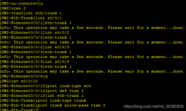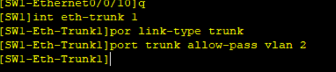 [ ]interface eth-trunk 1 //打开创建一个十兆的链路聚合 组1