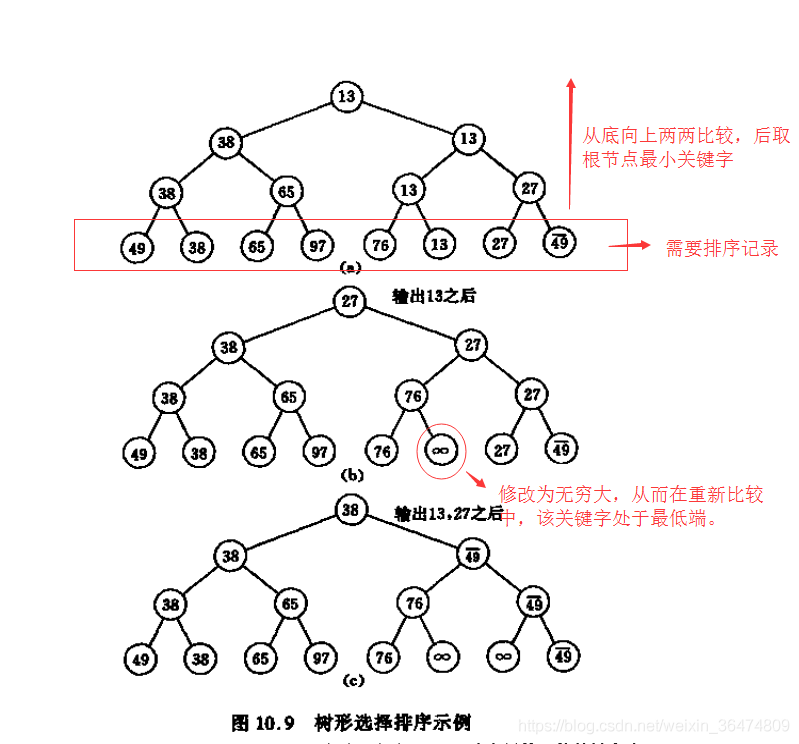 选择排序是给每个位置选择当前元素最小的,比如给第一个位置选择最小的,在剩余元素里面给第二个元素选择第二小的,依次类推,直到第n - 1个元素,第n个元素不用选择了,因为只剩下它一个最大的元素了。那么,在一趟选择,如果当前元素比一个元素小,而该小的元素又出现在一个和当前元素相等的元素后面,那么交换后稳定性就被破坏了。