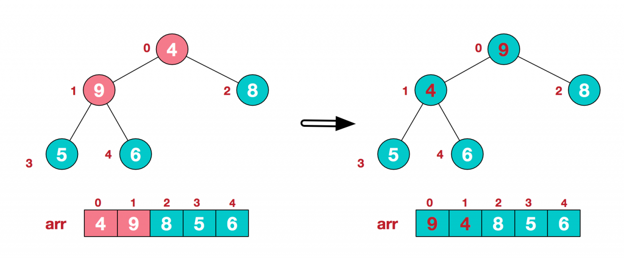 //如果左右子树有比根大(不是大顶堆),所以调整堆值,并且往下递归(需要子堆也为大顶堆)