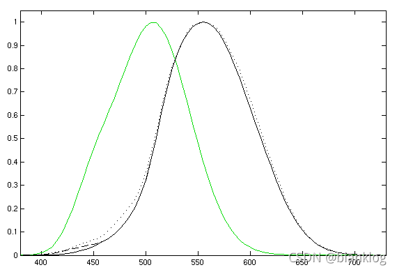 视见函数,黑线是白天的视见函数,绿线是黑夜的视见函数