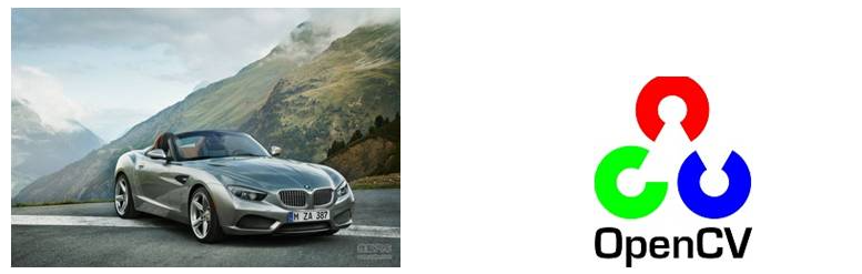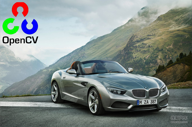 以上将右侧 opencv 的 Logo 融合到左侧 车辆图像中,可以发现一个特点是:opencv Logo 是不规则的,这个时候用一个和 右侧原图一样大小的 mask 来做掩膜是很合适的。图像融合后的效果如下: