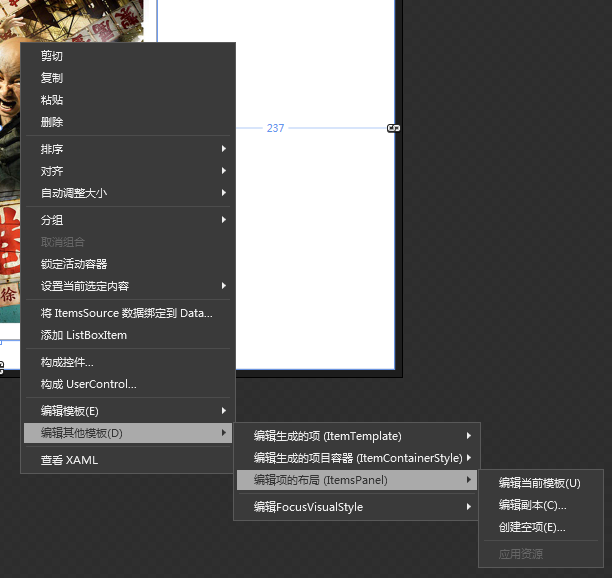 选中ListBox 右键选择 编辑其他模版选项,然后选 编辑项的布局(ItemsPanel),然后再选编辑副本,如图