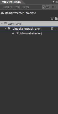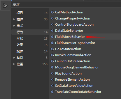 然后再看图,完成以上操作,找到下图的面板,在找到如下的那个行为,将他拖到[VirtualizingStackPanel]上,就如第一图所示