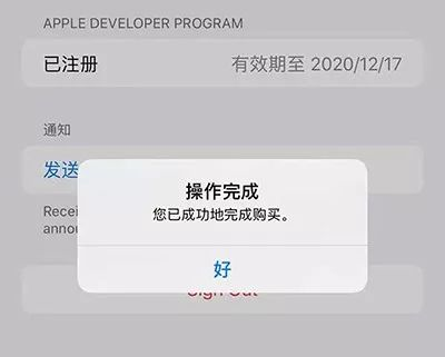 7.通过App Store的账号进行支付购买(可自己绑定微信、支付宝),成功注册开发者账号。
