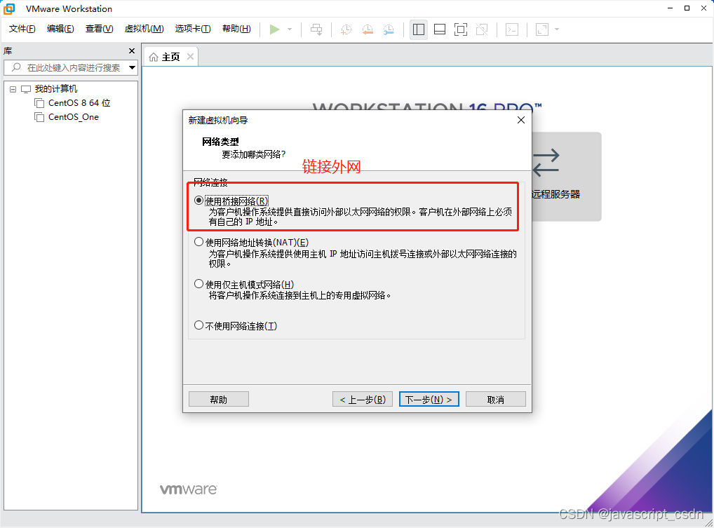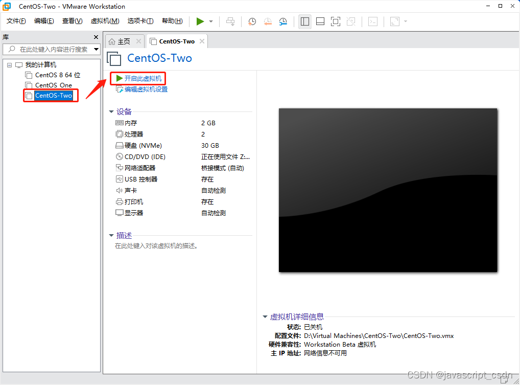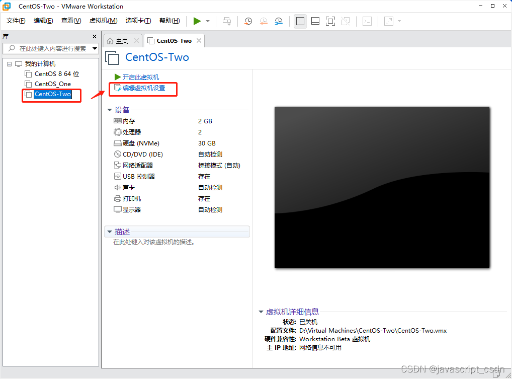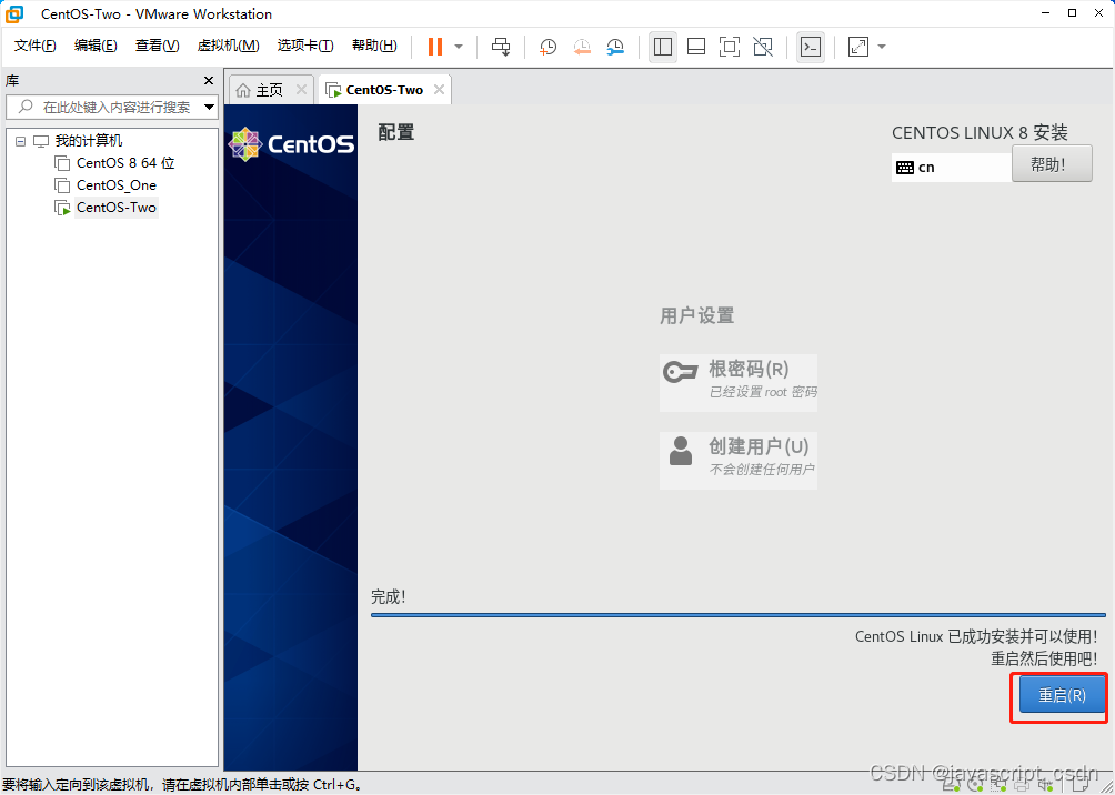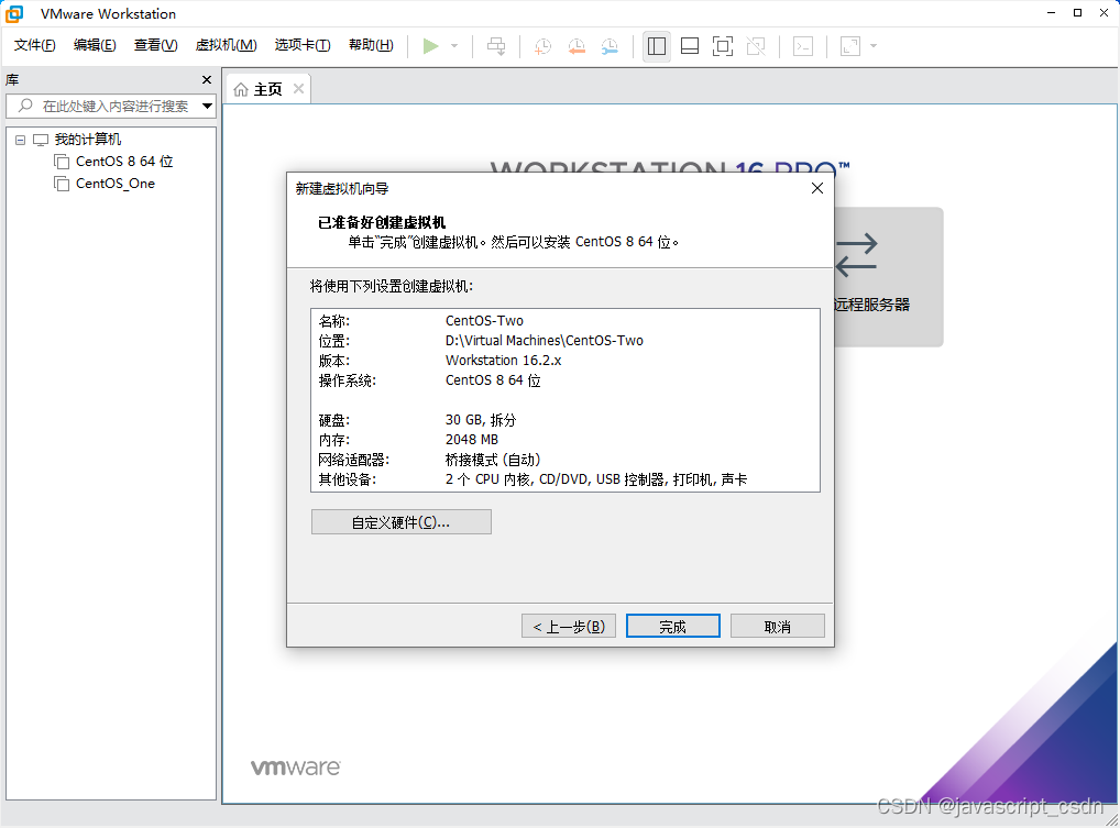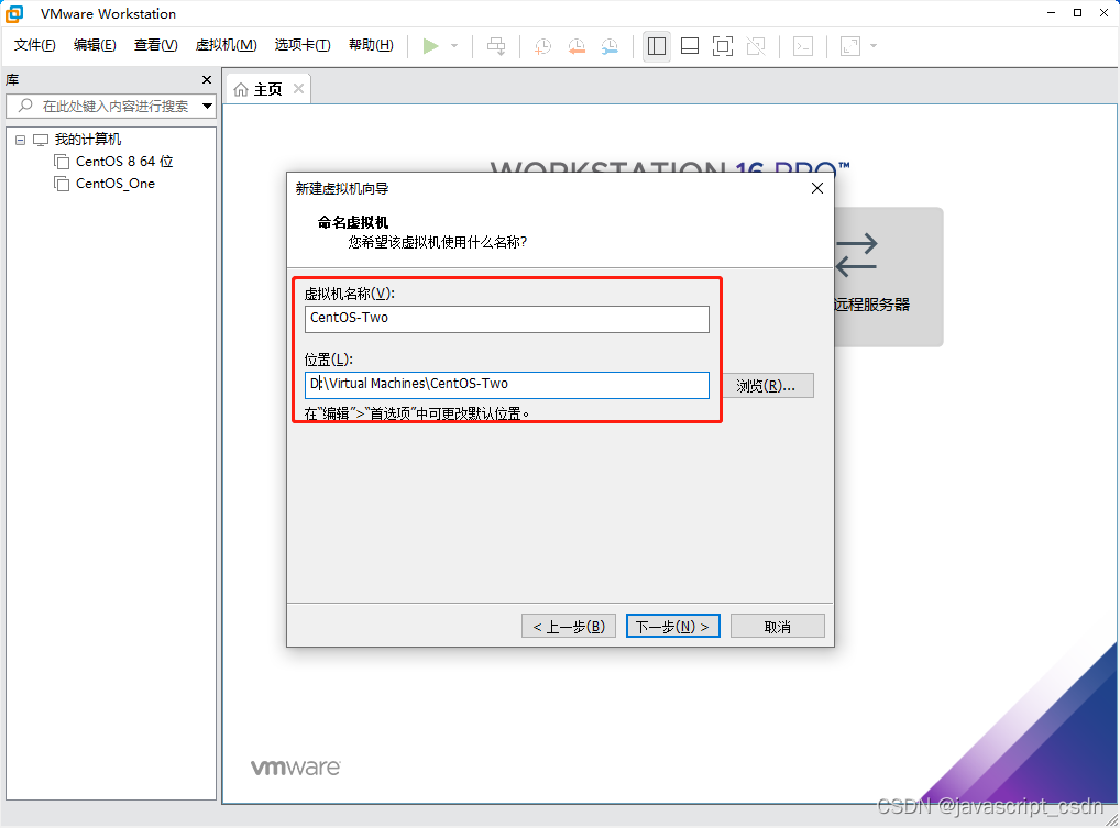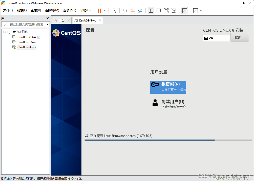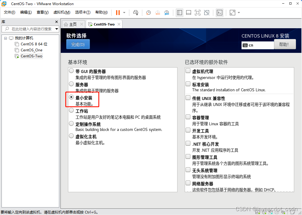 VMware虚拟机安装 CentOS 8 版权声明:本文为javascript_CSDN原创文章,遵循CC 4.0 BY-SA版权协议,转载请附上原文出处链接和本声明。原文链接:https://blog.csdn.net/javascript_CSDN/article/details/125166573