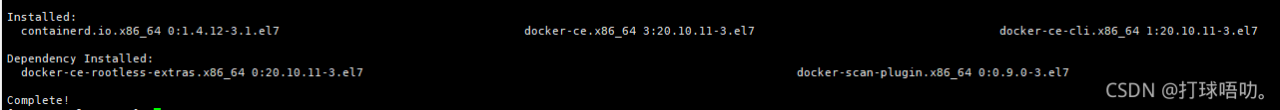 sudo yum install docker-ce docker-ce-cli containerd.io安装完成。