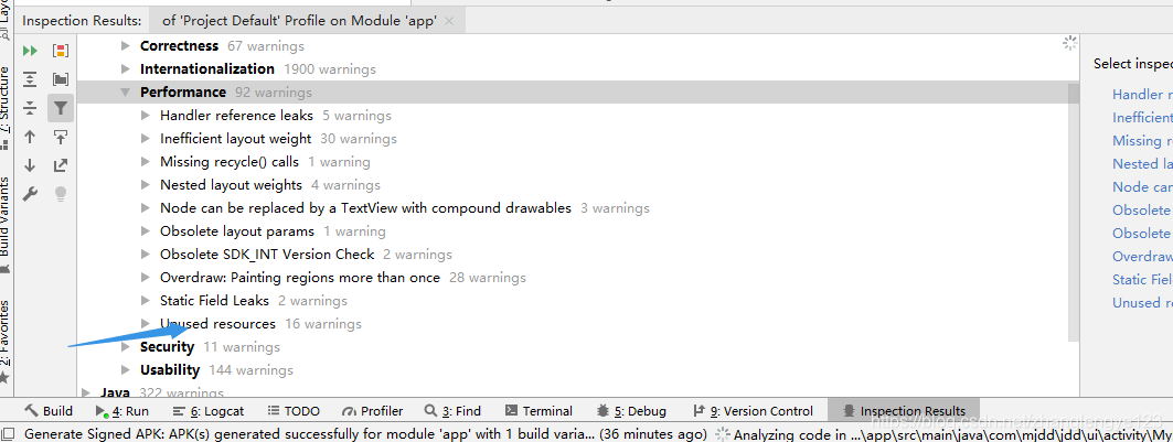1.本地项目无用资源(查找方式:Android studio 顶部Analyze->点击第一个选项inspection scope->选择Module app->点击ok然后等待一段时间编辑器工具下面有进度条,找到无用资源删除即可)